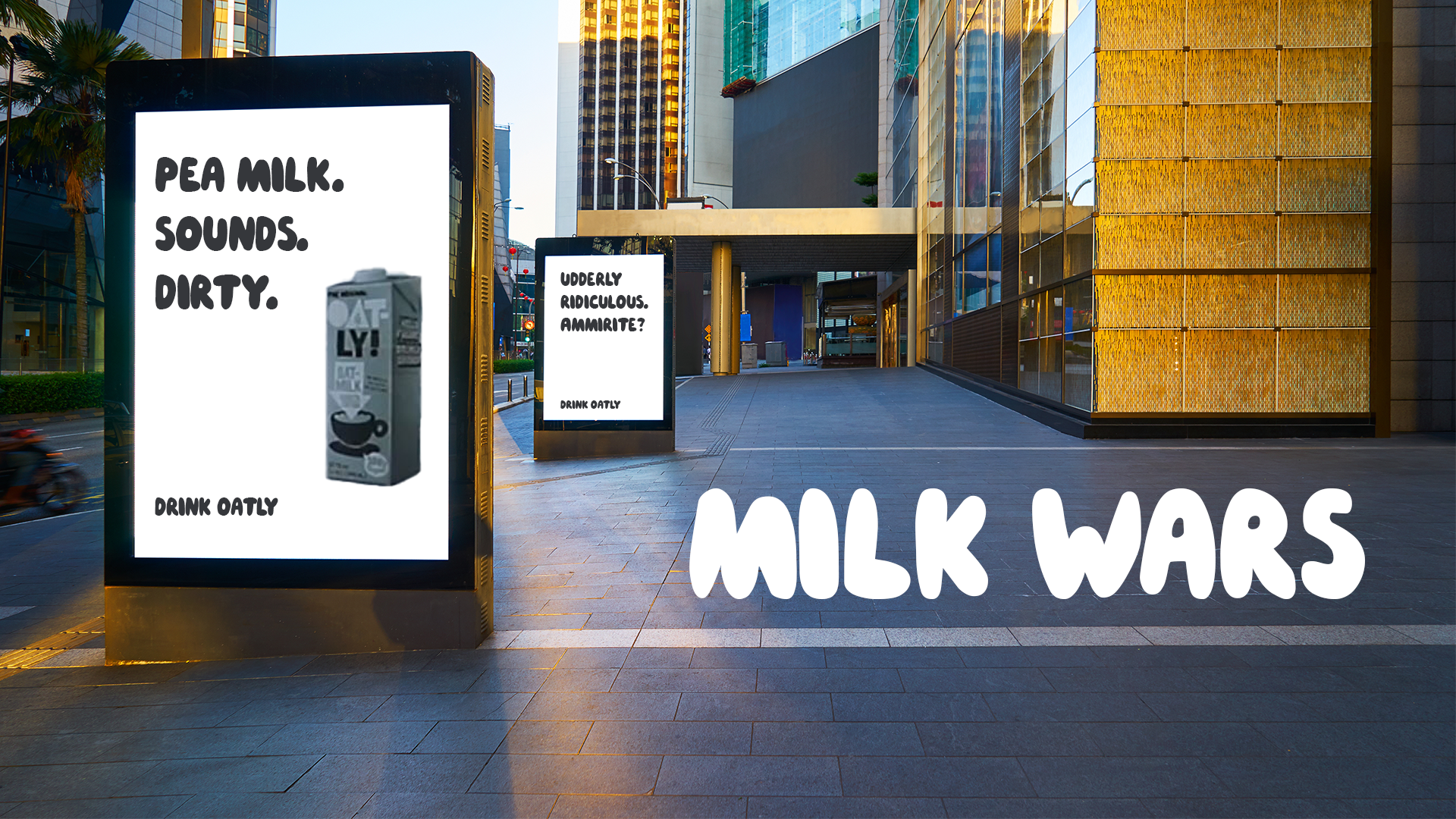 Come up with an innovative Out Of Home idea for Oatly Oatmilk that uses the brand tone of voice in a way they haven’t done before.